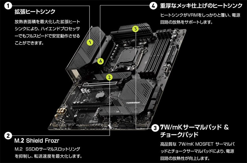 | MSI TOMAHAWK | ATX | 14フェーズ | Wi-Fi 6E | ★★★★★ | ★★☆☆☆ |