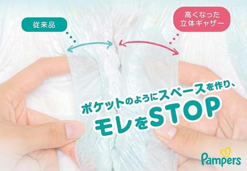 ビッグサイズを使う時期のお子さんは活発に動き回るため、おむつがズレやすくなります。 はかせるときにウエスト部分をしっかり引き上げて、太もものギャザーが外側に出ているか確認しましょう。