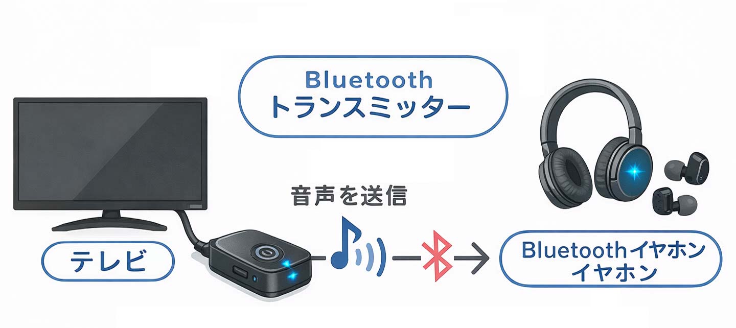 テレビや飛行機で音声をワイヤレスイヤホンで聴きたいのに、Bluetooth接続ができなくて困った経験はありませんか。