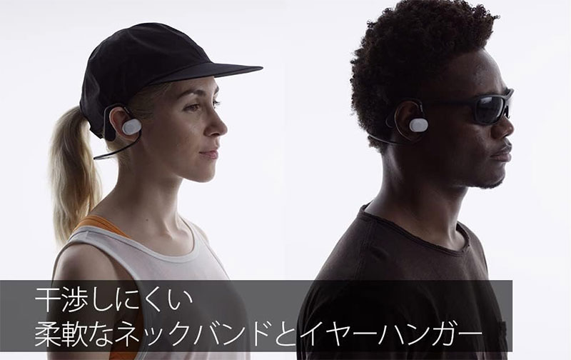 陸上短距離の桐生祥秀選手が推薦するソニーのオープンイヤー型イヤホンです。 耳の前にスピーカーが浮くように配置される「オフイヤーデザイン」で、骨伝導とは違った自然な音の聞こえ方が特徴です。