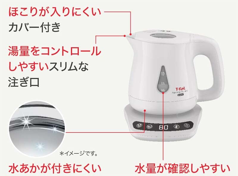 ティファールのアプレシア ロック コントロールは、8段階の温度調節ができる高機能電気ケトルです。 60℃から100℃まで好みの温度を細かく設定でき、コーヒーも緑茶も最適な温度で淹れられます。