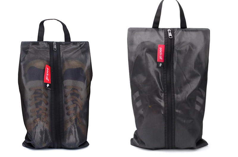 メッシュ素材で通気性抜群のシューズケースです。 ジムのあとにシューズを入れて、バッグの外ポケットに引っ掛けておいたら翌朝にはほとんど臭いが消えていて驚きました。 靴べらが付いているのも地味にありがたくて、革靴とかかとが硬めのシューズにも使い回せます。