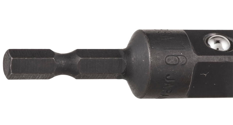 ソケットアダプターは、インパクトドライバーの六角軸チャックに装着して、ソケットレンチの先端を取り付けられるようにする変換パーツです。 タイヤ交換やDIYでの金属締結作業がグッと楽になります。