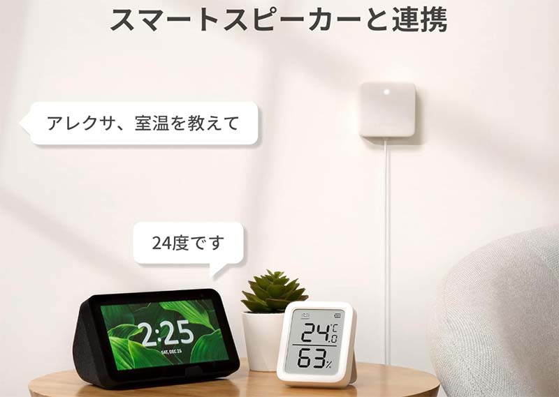 SwitchBot温湿度計プラスは、スマホ連携機能が充実したデジタル温湿度計です。Bluetooth接続でスマホアプリからリアルタイムの温度と湿度を確認できるので、おやすみカバーを外さずに夜間のケージ内環境をチェックできます。