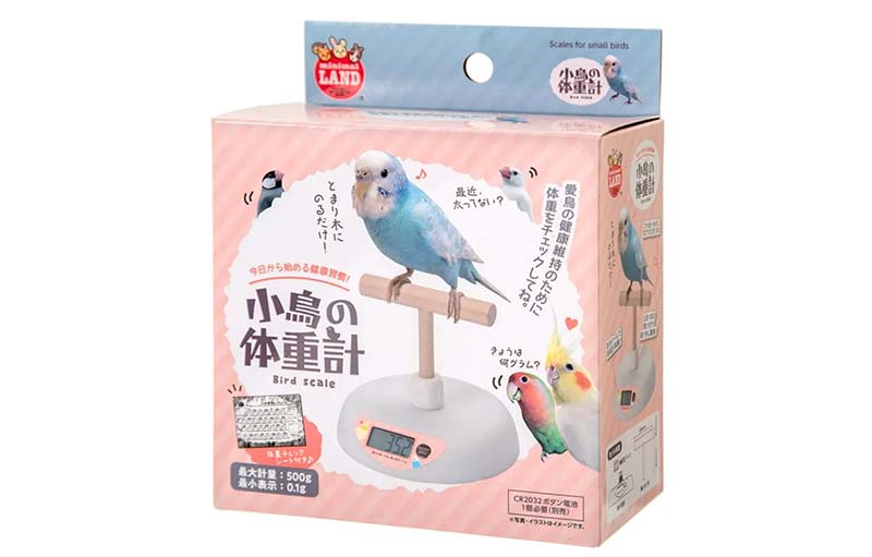 止まり木に乗るだけで小鳥の体重が測れる、インコ飼い主さんのために作られた専用体重計です。最小0.1gから最大500gまで計量でき、小型インコから中型インコまで幅広く対応しています。