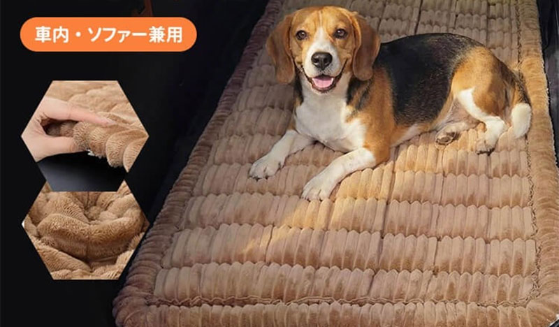 メモリーフォーム入りだから、愛犬がベッドのように使ってくれます。長距離ドライブでも過ごしやすいそうですね。