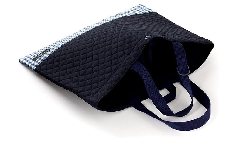日本製にこだわっているHOPPEのキルティング手提げで、ブラックストライプの大人っぽいデザインが特徴です。