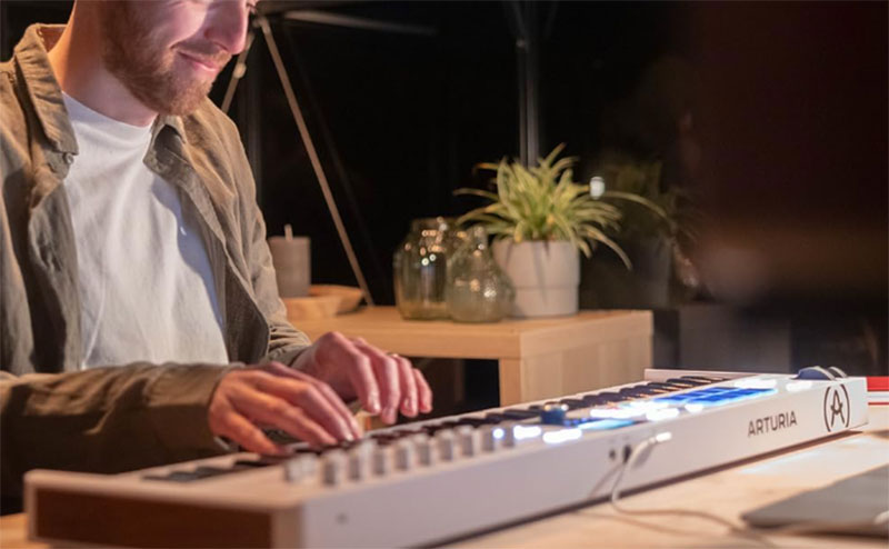 9つのフェーダーと9つのノブが付いていて、Ableton LiveやLogic Proとの連携がスムーズです。 Analog Lab Vが付属するので、買った日からすぐに本格的な音色で遊べます。