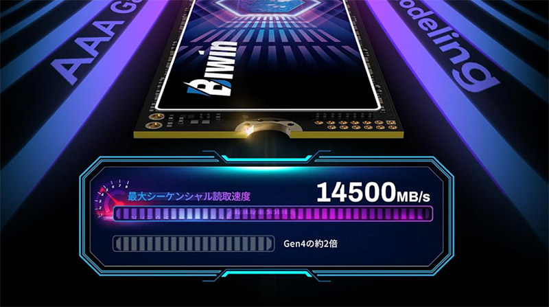 DRAMキャッシュ付きで最大14000MB/sの読み込みに対応。 AIコンピューティングやワークステーション用途もカバーしているので、プロ向けの仕事マシンにも良さそうです。