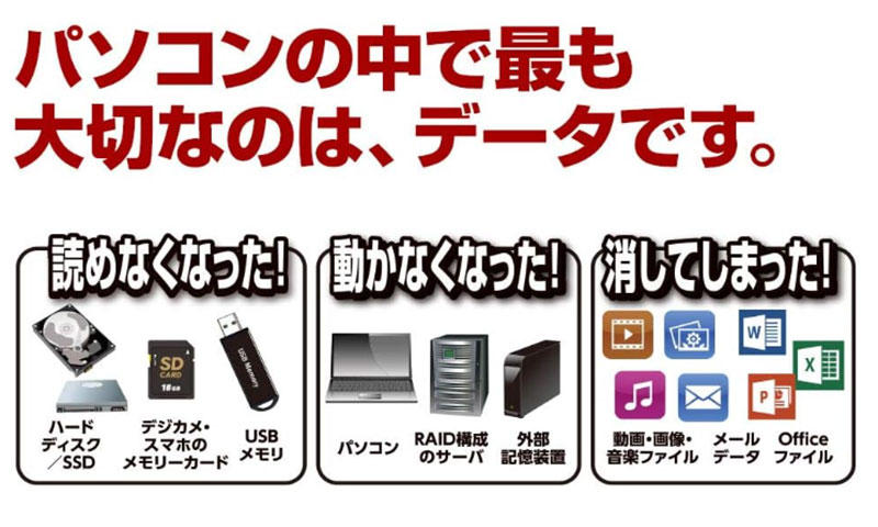 データを削除してからの時間が経つほど復元が難しくなるため、トラブルに気づいたらできるだけ早く復元作業に取り掛かることが大切です。