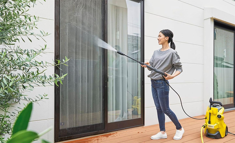 網戸を洗うときは弱めに、駐車場のコンクリートには強めにと、1台で使い分けができます。 自吸機能も付いているので、バケツの水を吸い上げて使うこともできます。