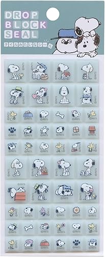 スヌーピーの定番ポーズはもちろん、寝転んでいる姿やダンスしている姿など、ファンにはたまらないシーンがたくさん収録されています。ウッドストックとの組み合わせデザインも入っているので、ペアで貼ると可愛さが倍増します。