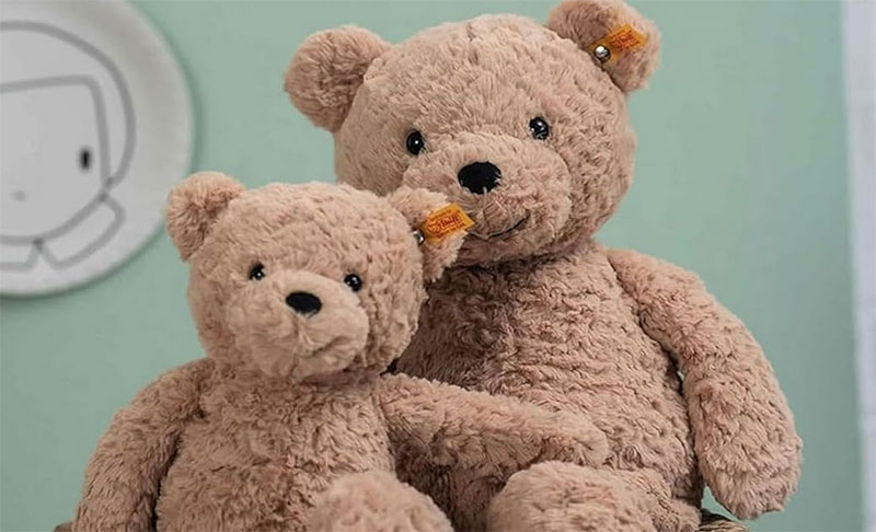 ドイツ生まれのシュタイフは「世界ではじめてテディベアを作った」と言われる老舗メーカーです。耳の付け根についた金色の“ボタン・イン・イヤー”がシュタイフ本物の証。