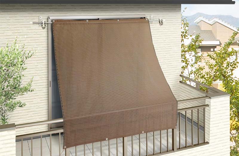 手すりに沿って垂れ下げるタイプは、手すりの高さに合わせて90cm幅のものが一般的です。上から吊り下げるタイプは、ベランダの奥行きをカバーできる200cm以上のサイズが便利です。